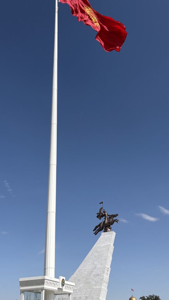 Remember to look up to appreciate the dominate Kygerz flag dancing above you right next to a large statue of Manas.