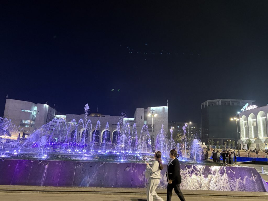Once the sunsets, make your way back to Ala Too Square to enjoy the architecture and fountains lit up! Lots of locals were hanging out, snacking, and relaxing and we enjoyed the people watching!